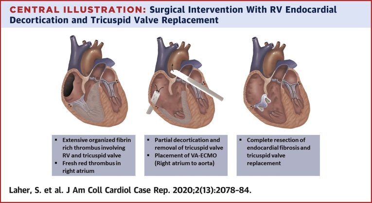 Surgical Intervention With RV Endocardial Decortication and Tricuspid Valve Replacement RV = right ventricular; VA-ECMO = venoarterial-extracorporeal membrane oxygenation.