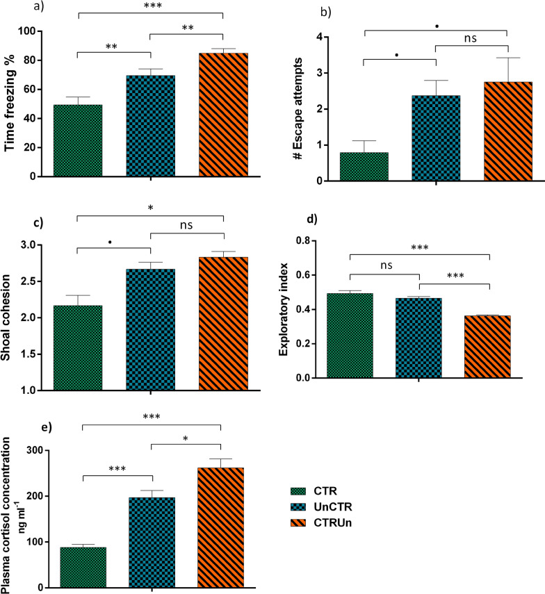Results: Fish were exposed to either a controllable or an uncontrollable stressor (i.e. possibility or impossibility to escape a signaled stressor). The effect of loss of control (possibility to escape followed by impossibility to escape) was also assessed. Both behavioral and circulating cortisol data indicates that the perception of control reduces the response to the stressor, when compared to the uncontrollable situation. Losing control had the most detrimental effect. The brain activity of the teleost homologues to the sensory cortex (Dld) and hippocampus (Dlv) parallels the uncontrolled and loss of control stressors, respectively, whereas the activity of the lateral septum (Vv) homologue responds in different ways depending on the gene marker of brain activity used.