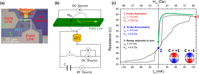 Non-volatile artificial synapse based on a vortex nano-oscillator
