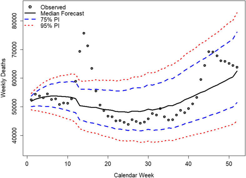 Assessing excess mortality in times of pandemics based on principal component analysis of weekly mortality data-the case of COVID-19