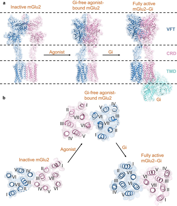 Structures of Gi-bound metabotropic glutamate receptors mGlu2 and mGlu4.Nature. 2021 Jun;594(7864):583-588. doi: 10.1038/s41586-021-03495-2. Epub 2021 Jun 16. Nature. 2021. PMID: 34135510