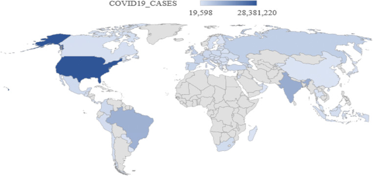 The world faces a high alert of coronavirus disease 2019 (COVID-19), leading to a million deaths and could become infected to reach a billion numbers. A sizeable amount of scholarly work has been available on different aspects of social-economic and environmental factors. At the same time, many of these studies found the linear (direct) causation between the stated factors. In many cases, the direct relationship is not apparent. The world is unsure about the possible determining factors of the COVID-19 pandemic, which need to be known through conducting nonlinearity (indirect) relationships, which caused the pandemic crisis. The study examined the nonlinear relationship between COVID-19 cases and carbon damages, managing financial development, renewable energy consumption, and innovative capability in a cross section of 65 countries. The results show that inbound foreign direct investment first increases and later decreases because of the increasing coronavirus cases. Further, the rise and fall in the research and development expenditures and population density exhibits increasing coronavirus cases across countries. The continued economic growth initial decreases later increase by adopting standardized operating procedures to contain coronavirus disease. The inter-temporal relationship shows that green energy source and carbon damages would likely influence the coronavirus cases with a variance of 17.127% and 5.440%, respectively, over a time horizon. The policymakers should be carefully designing sustainable healthcare policies, as the cost of carbon emissions leads to severe healthcare issues, which are likely to get exposed to contagious diseases, including COVID-19. The sustainable policy instruments, including renewable fuels in industrial production, advancement in cleaner production technologies, the imposition of carbon taxes on dirty production, and environmental certifications, are a few possible remedies that achieve healthcare sustainability agenda globally.