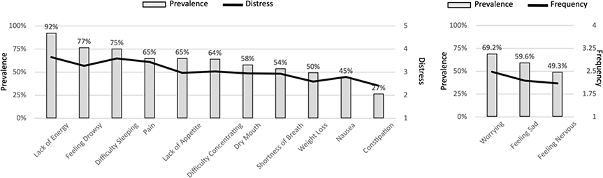 Methods: Patients were recruited from hepatology clinics within two health-care systems. Eligibility criteria included a model for end-stage liver disease (MELD-Na) score ≥15. Patients completed the Condensed Memorial Symptom Assessment Scale and Patient Health Questionnaire. Comparative statistics were used to analyze the cross-sectional survey data.