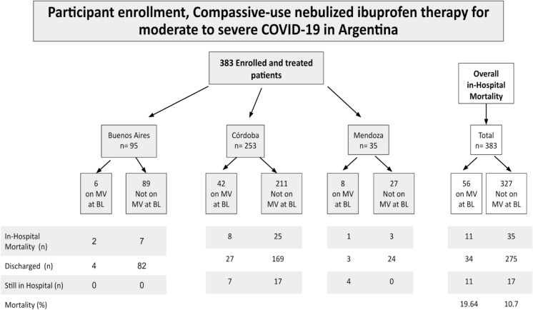 Methods: NaIHS (50 mg ibuprofen, tid) was provided in addition to standard of care (SOC) to hospitalized COVID-19 patients until oxygen saturation levels of > 94% were achieved on ambient air. Patients wore a containment hood to diminish aerosolization. Outcome data from participating patients treated at multiple hospitals in Argentina between April 4 and October 31, 2020, are summarized. Results were compared with a retrospective contemporaneous control (CC) group of hospitalized COVID-19 patients with SOC alone during the same time frame from a subset of participating hospitals from Córdoba and Buenos Aires.