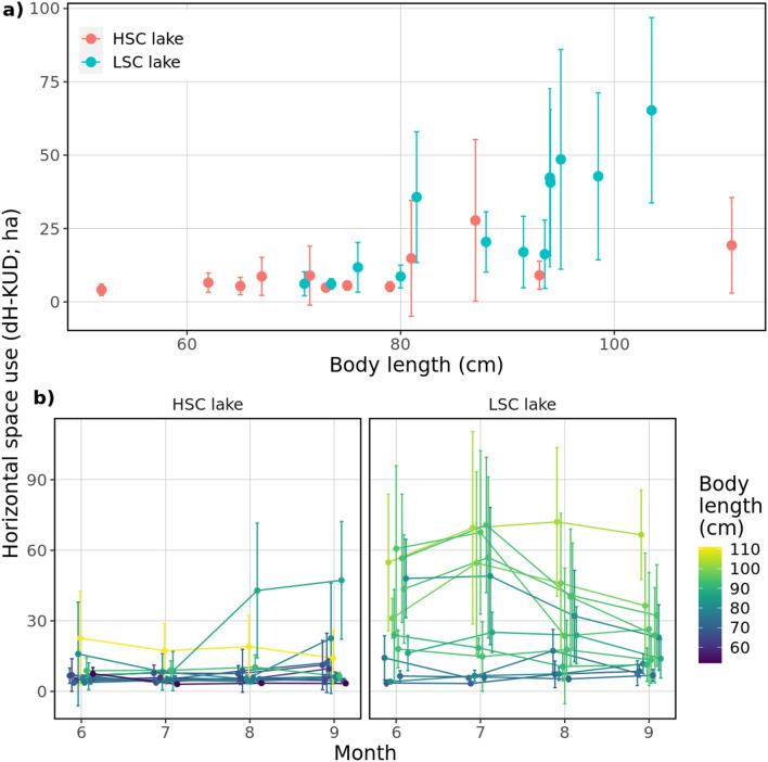 Structural complexity is known to influence prey behaviour, mortality and population structure, but the effects on predators have received less attention. We tested whether contrasting structural complexity in two newly colonised lakes (low structural complexity lake-LSC; high structural complexity-HSC) was associated with contrasting behaviour in an aquatic apex predator, Northern pike (Esox lucius; hereafter pike) present in the lakes. Behaviour of pike was studied with whole-lake acoustic telemetry tracking, supplemented by stable isotope analysis of pike prey utilization and survey fishing data on the prey fish community. Pike displayed increased activity, space use, individual growth as well as behavioural differentiation and spent more time in open waters in the LSC lake. Despite observed differences between lakes, stable isotopes analyses indicated a high dependency on littoral food sources in both lakes. We concluded that pike in the HSC lake displayed a behaviour consistent with a prevalent ambush predation behaviour, whereas the higher activity and larger space use in the LSC lake indicated a transition to more active search behaviour. It could lead to increased prey encounter and cause better growth in the LSC lake. Our study demonstrated how differences in structural complexity mediated prominent changes in the foraging behaviour of an apex predator, which in turn may have effects on the prey community.