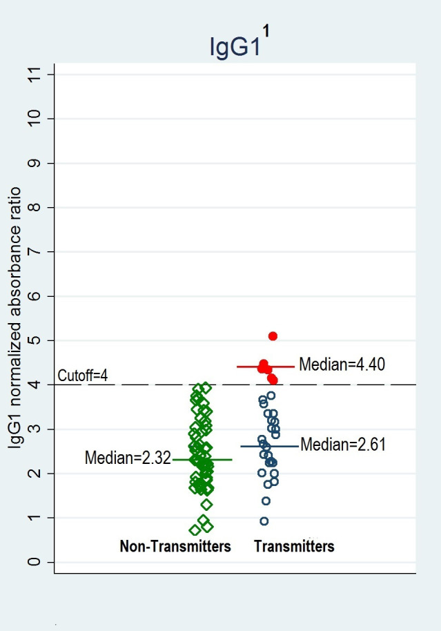 The mechanism of vertical transmission of Trypanosoma cruzi is poorly understood. In this study, we evaluated the role of IgG subclasses in the congenital transmission of Chagas disease. We conducted a case-control study in a public maternity hospital in Santa Cruz, Bolivia, enrolling women at delivery. Thirty women who transmitted T. cruzi to their newborns (cases), and 51 women who did not (controls) were randomly selected from 676 total seropositive women. Trypanosoma cruzi-specific IgG1, IgG2, and IgG3 levels were measured by in-house ELISA. The IgG4 levels were unmeasurable as a result of low levels in all participants. Quantitative polymerase chain reaction results and demographic factors were also analyzed. One-unit increases in normalized absorbance ratio of IgG1 or IgG2 levels increased the odds of congenital T. cruzi transmission in Chagas-seropositive women by 2.0 (95% CI: 1.1-3.6) and 2.27 (95% CI: 0.9-5.7), adjusted for age and previous blood transfusion. Odds of congenital transmission were 7.0 times higher in parasitemic mothers (95% CI: 2.3-21.3, P < 0.01) compared with nonparasitemic mothers. We observed that all mothers with IgG1 ≥ 4 were transmitters (sensitivity = 20%, specificity = 100%). Additionally, no mothers with IgG2 < 1.13 were transmitters (sensitivity = 100%, specificity = 21.6%). We demonstrated that IgG subclasses and parasite presence in blood are associated with vertical transmission of T. cruzi and could identify women at increased risk for congenital transmission by measuring IgG subclasses. These measures have potential as objective screening tests to predict the congenital transmission of Chagas.