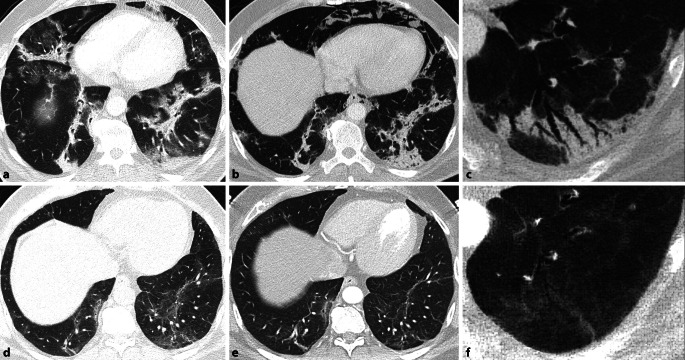 Ergebnisse: Chronische Müdigkeit und Dyspnoe sind die häufigsten anhaltenden Symptome nach COVID-19. Außerdem zeigen viele dieser Patienten eine Beeinträchtigung der körperlichen Leistungsfähigkeit. In der CT sind Milchglasareale und strangförmige Verdichtungen die häufigsten residualen Veränderungen nach einer COVID-19-Pneumonie, die histologisch einer organisierenden Pneumonie entsprechen. Ein Teil der Patienten kann nach einer schweren COVID-19-Pneumonie im Verlauf fibroseähnliche Veränderungen aufweisen. Patienten mit einem vormals schwereren Verlauf können ein restriktives Syndrom mit niedriger Kohlenmonoxid-Diffusionskapazität (DLCO) und Gesamt-Lungenkapazität (TLC) zeigen. Im längerfristigen Verlauf zeigen die meisten Patienten eine deutliche und kontinuierliche Verbesserung aller Symptome sowie einen Rückgang der radiologisch-morphologischen und funktionellen Veränderungen.