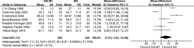 Results: A total of 7 publications, including 665 patients (ALMT 296 and MS 369), were included. Age (WMD: 1.80 years, 95% CI 0.31-3.29), weight (WMD: - 0.91 kg, 95% CI - 5.57 to 3.75), sex distribution (OR: 1.00, 95% CI 0.74-1.35) and surgical type (patch or direct closure) (OR: 1.00, 95% CI 0.67-1.49) were comparable in the ALMT group and MS group. No significant differences in the success rate (OR 0.23; 95% CI 0.05-1.07) or severe complication rate (OR 1.46; 95% CI 0.41-5.22) were found between the ALMT group and the MS group. In addition, the differences in the cardiopulmonary bypass (CPB) time (WMD 6.33; 95% CI - 1.92 to 14.58 min, p = 0.13) and the operation time (WMD 5.23; 95% CI - 12.49 to 22.96 min, p = 0.56) between the ALMT group and the MS group were not statistically significant. However, the ALMT group had a significantly longer aortic cross-clamp time (2.37 min more, 95% CI 1.07-3.67 min, p = 0.0003). The intubation time was 1.82 h shorter (95% CI - 3.10 to - 0.55 h; p = 0.005), the intensive care unit (ICU) stay was 0.24 days shorter (95% CI - 0.44 to - 0.04 days; p = 0.02), and the postoperative hospital stay was 2.45 days shorter (95% CI - 3.01 to - 1.88 days; p < 0.00001) in the ALMT group than in the MS group. Furthermore, the incision length was significantly shortened by 8.97 cm in the ALMT group compared with the MS group (95% CI - 9.36 to - 8.58 cm; p < 0.00001).