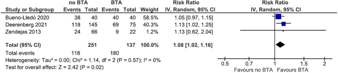 Results: We identified 23 studies, comprising 995 patients. Generally, either 500 units of Dysport® or 200-300 units of Botox® are injected at 3-5 locations bilaterally in all three muscles of the lateral abdominal wall, about 4 weeks prior to surgery. No major procedural complications are reported. Meta-analyses show that BTA provides significant elongation of the lateral abdominal wall of 3.2 cm per side (95% CI 2.0-4.3, I2 = 0%, p < 0.001); 6.3 cm total elongation, and a significant but heterogeneous decrease in transverse hernia width (95% CI 0.2-6.8, I2 = 94%, p = 0.04). Furthermore, meta-analysis shows that BTA pretreatment in ventral hernia patients significantly increases the fascial closure rate [RR 1.08 (95% CI 1.02-1.16, I2 = 0%, p = 0.02)].