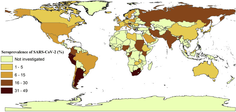 Conclusions: The present study indicates that the majority of the world's human population was still highly susceptible to SARS-CoV-2 infection in mid-2021, emphasizing the need for vaccine deployment to vulnerable groups of people, particularly in developing countries, and for the implementation of enhanced preventive measures until 'herd immunity' to SARS-CoV-2 has developed.