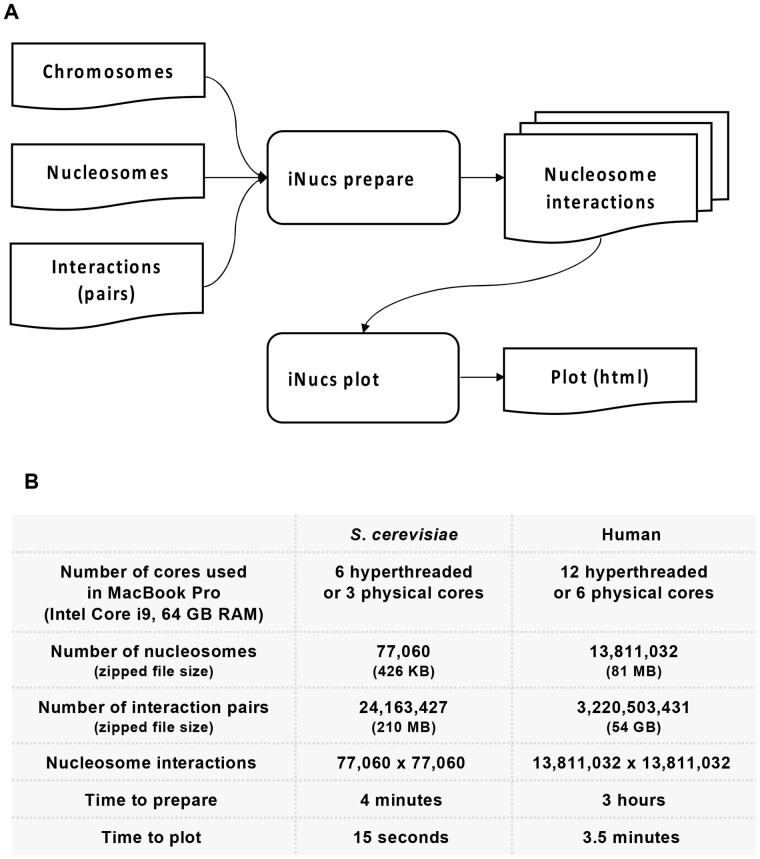 Results: We developed iNucs, a user-friendly and efficient Python-based bioinformatics tool to compute and visualize nucleosome-resolved interactions using standard pairs format input generated from pairtools.