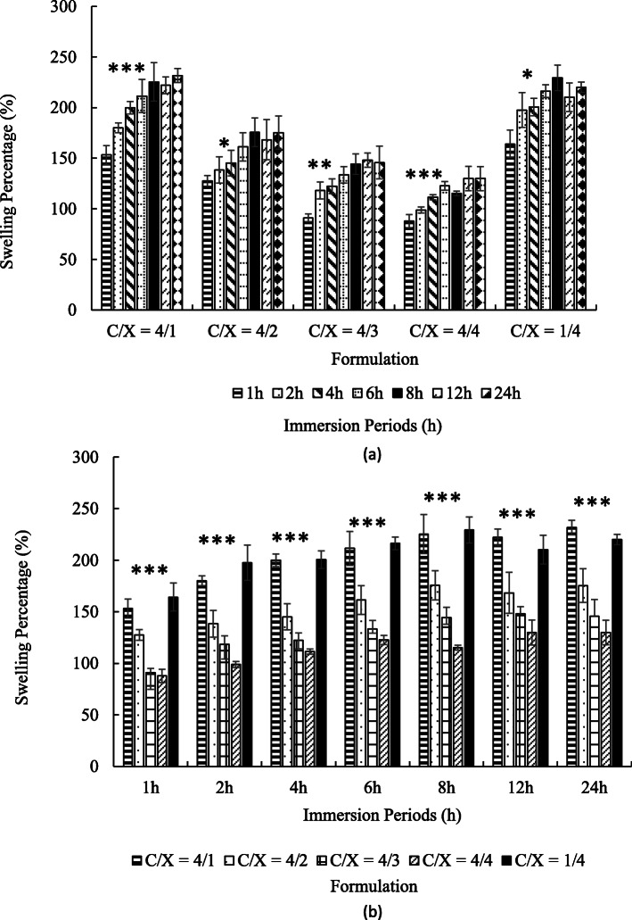 Results: Using scanning electron microscopy (SEM) techniques, we observed that the shell formulation did not change the bead morphology. The cross-sectional images showed that the beads were highly porous. The interaction between anionic xanthan gum and cationic chitosan made the shell layer dense, resisting to the mass transfer in the shell layer. Due to the high mass transfer resistance to water penetration, the longer float and delivery time were caused by the dense surface of the beads. The cell culture demonstrated that floating core-shell beads were biocompatible. Importantly, the beads with tetracycline showed a significant prolonged anti-bacterial effect.