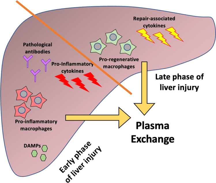 Paediatric acute liver failure (PALF) is a rare but devastating condition with high mortality. An exaggerated inflammatory response is now recognised as pivotal in the pathogenesis and prognosis of ALF, with cytokine spill from the liver to systemic circulation implicated in development of multi-organ failure associated with ALF. With advances in medical management, especially critical care, there is an increasing trend towards spontaneous liver regeneration, averting the need for emergency liver transplantation or providing stability to the patient awaiting a graft. Hence, research is ongoing for therapies, including extracorporeal liver support devices, that can bridge patients to transplant or spontaneous liver recovery. Considering the immune-related pathogenesis and inflammatory phenotype of ALF, plasma exchange serves as an ideal liver assist device as it performs both the excretory and synthetic functions of the liver and, in addition, works as an immunomodulatory therapy by suppressing the early innate immune response in ALF. After a recent randomised controlled trial in adults demonstrated a beneficial effect of high-volume plasma exchange on clinical outcomes, this therapy was incorporated in European Association for the Study of Liver (EASL) recommendations for managing adult patients with ALF, but no guidelines exist for PALF. In this review, we discuss rationale, timing, practicalities, and existing evidence regarding the use of plasma exchange as an immunomodulatory treatment in PALF. We discuss controversies in delivery of this therapy as an extracorporeal device, and practicalities of use of plasma exchange as a 'hybrid' therapy alongside other extracorporeal liver assist devices, before finally reviewing outstanding research questions for the future.