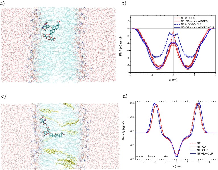Keywords: CLR, cholesterol; DDS, drug delivery system; DOPC; DOPC, dioleoylphosphatidylcholine; Drug delivery; GA, glycyrrhizic acid; Glycyrrhizin; Lipid bilayer; MD, molecular dynamics; Membrane penetration; Molecular dynamics; NF, nifedipine; NMR; NMR, nuclear magnetic resonance; Nifedipine; PAMPA; PAMPA, parallel artificial membrane permeability assay; PMF, potential of mean force; TBK, tebuconazole; VDW, Van der Waals.