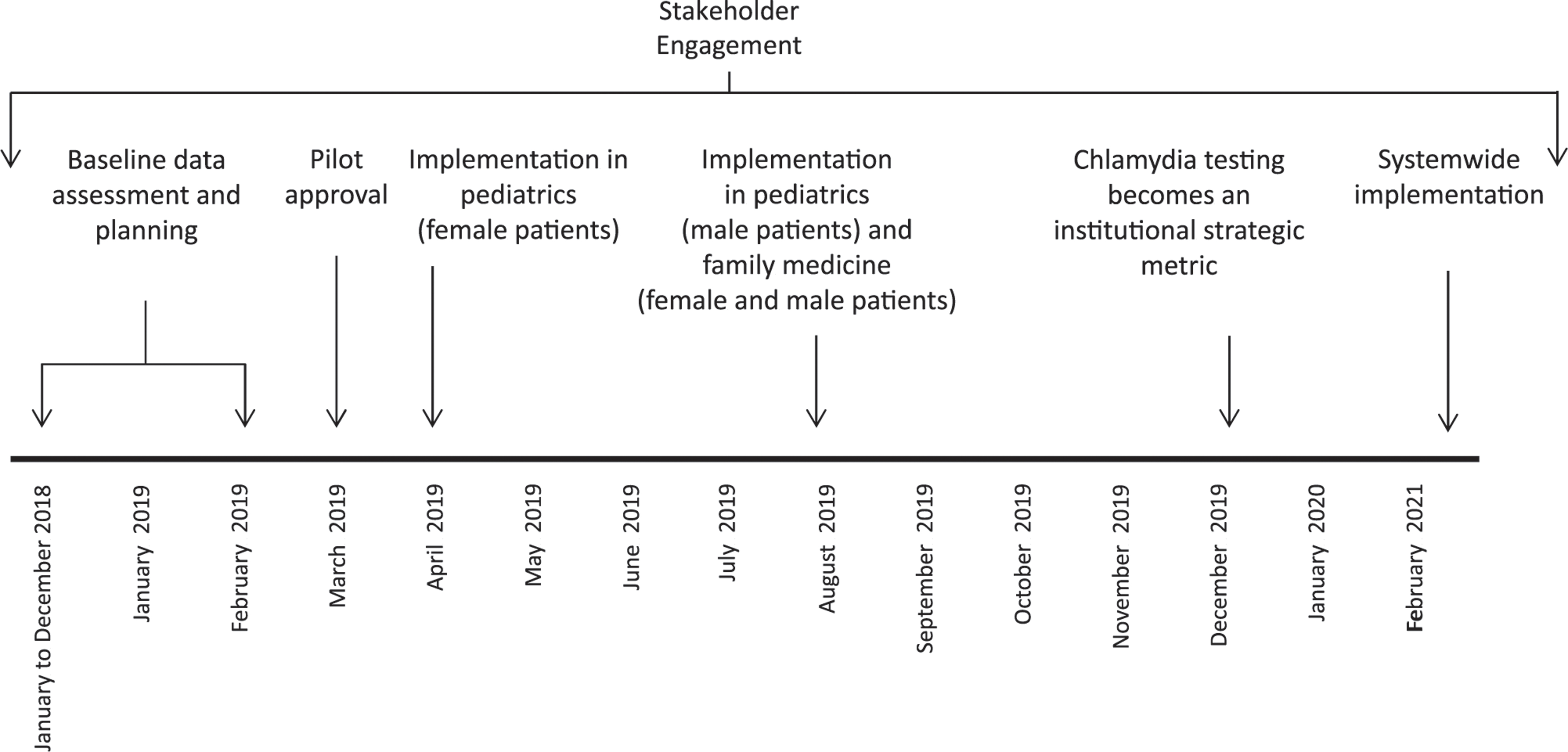 Conclusions: Universal testing for chlamydia and gonorrhea in primary care pediatrics and family medicine is a feasible approach to improving testing rates .