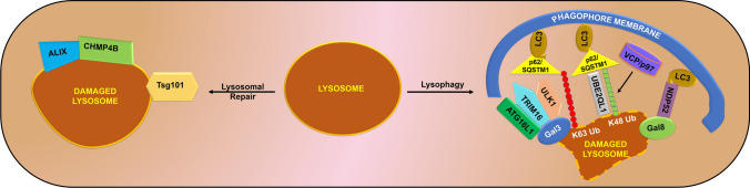 Lysosomes are single membrane-bound organelles containing acid hydrolases responsible for the degradation of cellular cargo and maintenance of cellular homeostasis. Lysosomes could originate from pre-existing endolysosomes or autolysosomes, acting as a critical juncture between autophagy and endocytosis. Stress that triggers lysosomal membrane permeabilization can be altered by ESCRT complexes; however, irreparable damage to the membrane results in the induction of a selective lysosomal degradation pathway, specifically lysophagy. Lysosomes play an indispensable role in different types of autophagy, including microautophagy, macroautophagy, and chaperone-mediated autophagy, and various cell death pathways such as lysosomal cell death, apoptotic cell death, and autophagic cell death. In this review, we discuss lysosomal reformation, maintenance, and degradation pathways following the involvement of the lysosome in autophagy and cell death, which are related to several pathophysiological conditions observed in humans.