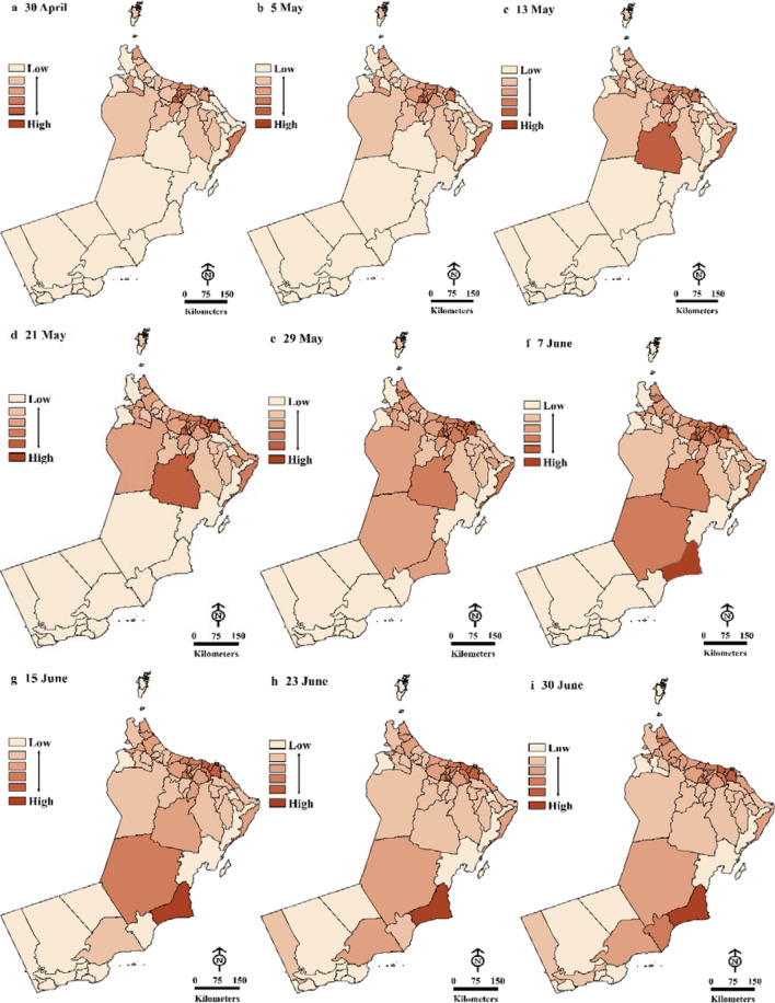 Spatiotemporal Assessment of COVID-19 Spread over Oman Using GIS Techniques