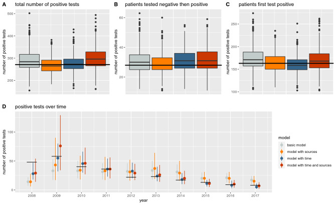 Probabilistic modelling of effects of antibiotics and calendar time on transmission of healthcare-associated infection