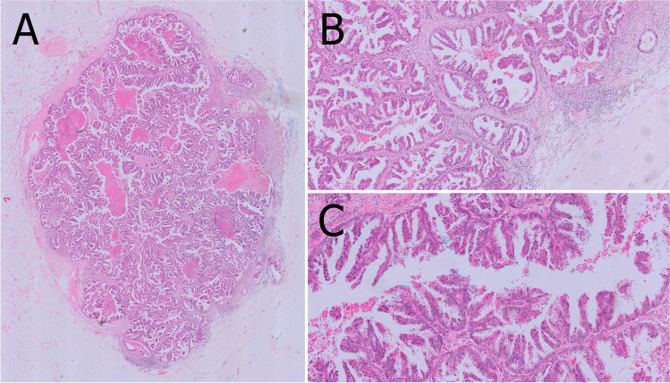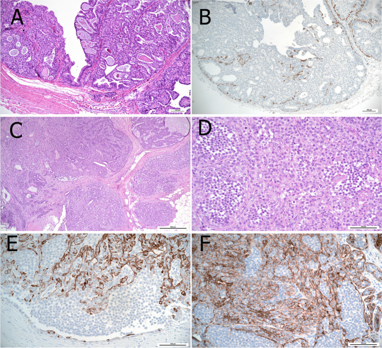 - Alsadoun N, MacGrogan G, Truntzer C, Lacroix-Triki M, Bedgedjian I, Koeb MH, El Alam E, Medioni D, Parent M, Wuithier P, Robert I, Boidot R, Arnould L. Solid papillary carcinoma with reverse polarity of the breast harbors specific morphologic, immunohistochemical and molecular profile in comparison with other benign or malignant papillary lesions of the breast: a comparative study of 9 additional cases. Mod Pathol. 2018;31:1367–1380. doi: 10.1038/s41379-018-0047-1. - DOI - PubMed
