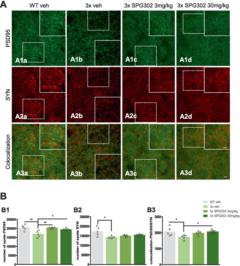 Keywords: 3xTg-AD mice; Alzheimer’s disease; Dendritic spines; SPG302; Synaptic deficits; Synaptic markers.