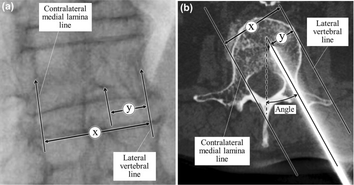 Purpose: To clarify the accuracy of vertebral puncture of the vertebral tertile area needling (VETERAN) method puncturing the pedicle superimposed on one-third of the width between the lateral vertebral line to the contralateral medial lamina line compared with Cathelin-needle-assisted puncture (CAP) method puncturing using the Cathelin needle as a guide in percutaneous vertebroplasty.