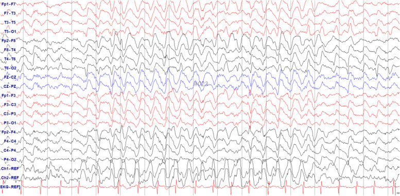 Case presentation: A 39-year-old man underwent liver transplantation for liver cirrhosis due to alcoholic liver disease. The postoperative immunosuppressant consisted of tacrolimus (5 mg) and mycophenolate (500 mg) twice daily. Five months after taking tacrolimus, he presented with talkativeness, which gradually worsened. Brain magnetic resonance imaging performed 10 months after tacrolimus administration revealed a hyperintense lesion affecting the middle of the pontine tegmentum on T2WI. The blood concentration of tacrolimus was 7.2 ng/mL (therapeutic range 5-20 ng/mL). After 21 months, he exhibited postural tremor in both the hands. Twenty-four months after taking tacrolimus, he showed drowsy mentality, intention tremor, and dysdiadochokinesia. Electroencephalography presented generalized high-voltage rhythmic delta waves; therefore, tacrolimus was discontinued in suspicion of tacrolimus-induced neurotoxicity, and anticonvulsive treatment was started. The level of consciousness gradually improved, and the patient was able to walk independently with mild ataxia.