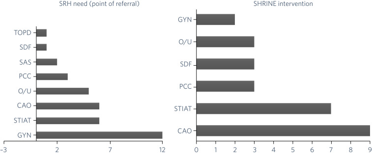 Results: Thirty per cent of women were identified as having unmet SRH needs and proceeded to a specialist appointment, representing a 2.5-fold increase in unmet need detection. Forty-two per cent of women were assessed, representing a 3.5-fold increase in uptake. Twenty-one per cent of women initiated SRH interventions, of which 14% had all their SRH needs met. Staff, patients and carers highlighted the acceptability and importance of SRH care, if interventions were appropriately timed and patients' individual risk profiles were considered. Barriers to access included lack of routine enquiry, illness acuity and impact of the COVID-19 pandemic.