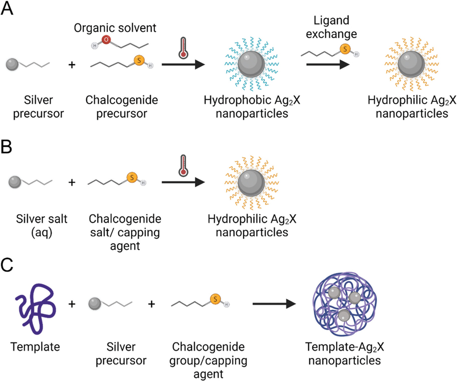 Silver chalcogenide (Ag2X, where X = S, Se, or Te) nanoparticles have been extensively investigated for their applications in electronics but have only recently been explored for biomedical applications. In the past 10 years, Ag2X, primarily silver sulfides at first, have become of great importance as quantum dots, since they not only possess excellent deep tissue imaging properties in the near-infrared regions I and II, but also have low toxicities. Their appealing properties have led to numerous recent developments of Ag2X for biomedical applications. Furthermore, Ag2X have been discovered in the past 2-3 years to be potent X-ray contrast agents, adding to the numerous biomedical uses of these nanoparticles. In this review, we discuss the most recent advances in silver chalcogenide nanoparticle use in areas such as bio-imaging, theranostics, and biosensors. Moreover, we examine the advances in synthetic approaches for these nanoparticles, which include aqueous and organic syntheses routes. Finally, we discuss the advantages and current limitations in the use of silver chalcogenides for different biomedical applications and their potential for advancement and expansions in use.