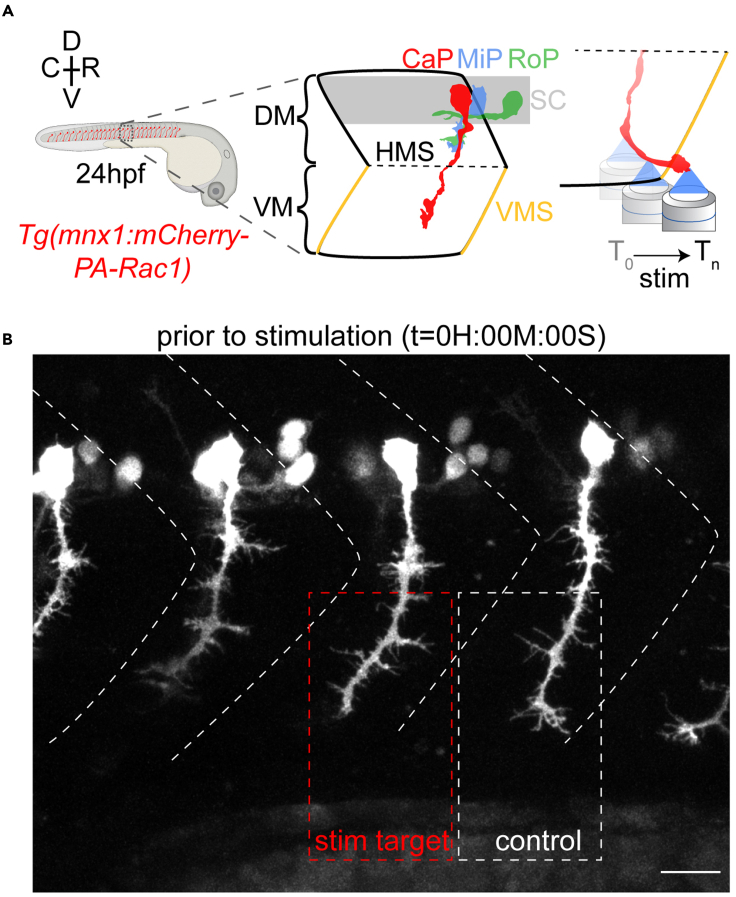 Axons form the long-range connections of biological neuronal networks, which are built through the developmental process of axon guidance. Here, we describe a protocol to precisely and non-invasively control axonal growth trajectories in live zebrafish embryos using focal light activation of a photoactivatable Rac1. We outline techniques for photostimulation, time-lapse imaging, and immunohistochemistry. These approaches enable engineering of long-range axonal circuitry or repair of defective circuits in living zebrafish, despite a milieu of competing endogenous signals and repulsive barriers. For complete details on the use and execution of this protocol, please refer to Harris et al. (2020).