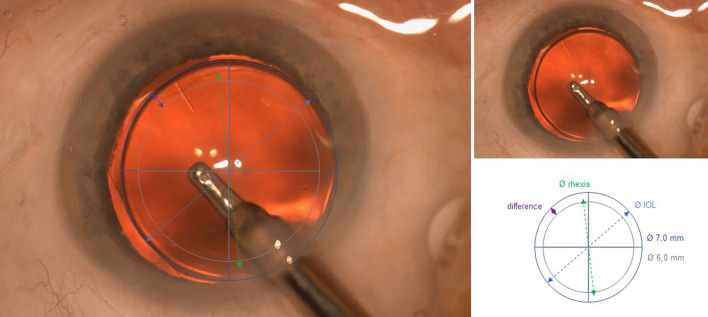 We report a case series of patients with high myopia (axial length 25.04-27.59 mm) diagnosed with cataract and maculopathy who underwent a combined procedure of phacoemulsification with implantation of a large optic intraocular lens (IOL) and intravitreal injection. Six patients with a mean (± standard deviation) age of 73.20 ± 7.19 years received the 7.0-mm optic ASPIRA-aXA IOL (HumanOptics AG, Erlangen, Germany) and intravitreal injection of aflibercept at the end of the surgery. The corrected distance visual acuity (CDVA) improved significantly (p = 0.001) from a preoperative logMAR of 0.87 ± 0.28 logMAR to 0.49 ± 0.18 logMAR at 10 weeks postoperatively. Even though all patients had a persisting central scotoma due to their maculopathy, there was a significant improvement in their subjective quality of life and self-autonomy. Patients reported no postoperative dysphotopsia. During surgery and postoperative examinations, the wide IOL optic permitted an enhanced view of the fundus. The IOLs remained stable after implantation, especially during the intravitreal injection at the end of the surgery. No IOL displacement or shift of the lens was observed. Retinal diseases are sight-threatening and diminish the patient's quality of life due to reduced visual acuity and visual field defects. When cataract surgery is performed in this patient group, a reduced prognosis can be assumed. Our results show that implantation of the large optic IOL enables a wide view of the fundus during and after surgery without any additional risks or negative effects. It may also reduce the risk of dysphotopsia in cases of IOL decentration in large capsular bags, but comparative studies with a higher number of cases are needed to confirm this. A large rhexis and large IOL optic seem to be advantageous for the retinal surgeon in follow-up surgeries on the posterior segment of the eye.