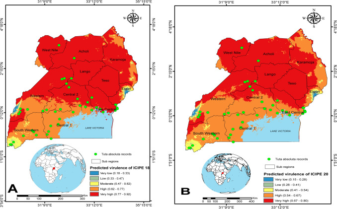 - Aigbedion-Atalor PO, et al. The South America tomato leafminer, Tuta absoluta (Lepidoptera: Gelechiidae), spreads its wings in Eastern Africa: distribution and socioeconomic impacts. J. Econ. Entomol. 2019;112:2797–2807. - PubMed