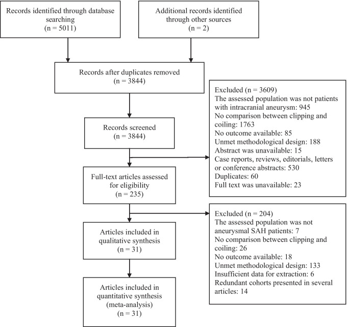 Clipping versus coiling for aneurysmal subarachnoid hemorrhage: a systematic review and meta-analysis of prospective studies