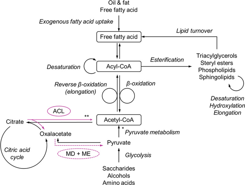 - Ratledge C, Wynn JP. The biochemistry and molecular biology of lipid accumulation in oleaginous microorganisms. Adv Appl Microbiol. 2002;51:1–51. - PubMed