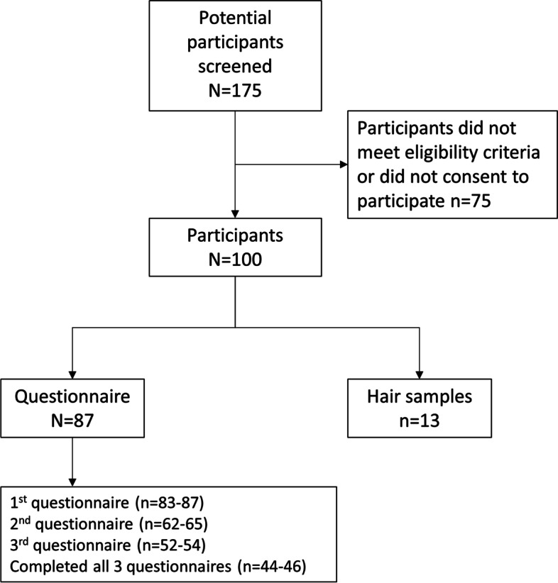 Methods: Women recruited from three sites in the North-West of England. Women were asked to participate if a previous pregnancy had ended in a perinatal death. Participants completed validated measures of psychological state (Cambridge Worry Score, Edinburgh Postnatal Depression Score (EPDS), Generalized Anxiety Disorder 7-item score) and health status (EQ-5D-5L™ and EQ5D-Visual Analogue Scale) at three time points, approximately 15 weeks' and 32 weeks' gestation and 6 weeks postnatally. A sample of hair was taken at approximately 36 weeks' gestation for measurement of hair cortisol in a subgroup of women. The hair sample was divided into samples from each trimester and cortisol measured by ELISA.
