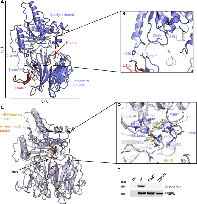 Deficiency of the serine hydrolase prolyl endopeptidase-like (PREPL) causes a recessive metabolic disorder characterized by neonatal hypotonia, feeding difficulties, and growth hormone deficiency. The pathophysiology of PREPL deficiency and the physiological substrates of PREPL remain largely unknown. In this study, we connect PREPL with mitochondrial gene expression and oxidative phosphorylation by analyzing its protein interactors. We demonstrate that the long PREPLL isoform localizes to mitochondria, whereas PREPLS remains cytosolic. Prepl KO mice showed reduced mitochondrial complex activities and disrupted mitochondrial gene expression. Furthermore, mitochondrial ultrastructure was abnormal in a PREPL-deficient patient and Prepl KO mice. In addition, we reveal that PREPL has (thio)esterase activity and inhibition of PREPL by Palmostatin M suggests a depalmitoylating function. We subsequently determined the crystal structure of PREPL, thereby providing insight into the mechanism of action. Taken together, PREPL is a (thio)esterase rather than a peptidase and PREPLL is involved in mitochondrial homeostasis.
