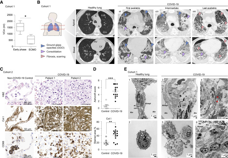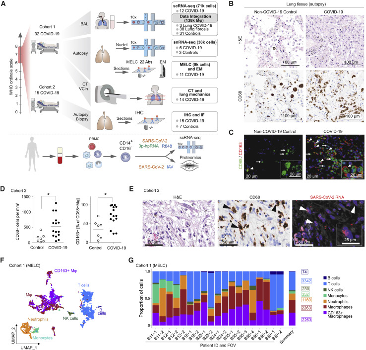 COVID-19-induced "acute respiratory distress syndrome" (ARDS) is associated with prolonged respiratory failure and high mortality, but the mechanistic basis of lung injury remains incompletely understood. Here, we analyze pulmonary immune responses and lung pathology in two cohorts of patients with COVID-19 ARDS using functional single-cell genomics, immunohistology, and electron microscopy. We describe an accumulation of CD163-expressing monocyte-derived macrophages that acquired a profibrotic transcriptional phenotype during COVID-19 ARDS. Gene set enrichment and computational data integration revealed a significant similarity between COVID-19-associated macrophages and profibrotic macrophage populations identified in idiopathic pulmonary fibrosis. COVID-19 ARDS was associated with clinical, radiographic, histopathological, and ultrastructural hallmarks of pulmonary fibrosis. Exposure of human monocytes to SARS-CoV-2, but not influenza A virus or viral RNA analogs, was sufficient to induce a similar profibrotic phenotype in vitro. In conclusion, we demonstrate that SARS-CoV-2 triggers profibrotic macrophage responses and pronounced fibroproliferative ARDS.