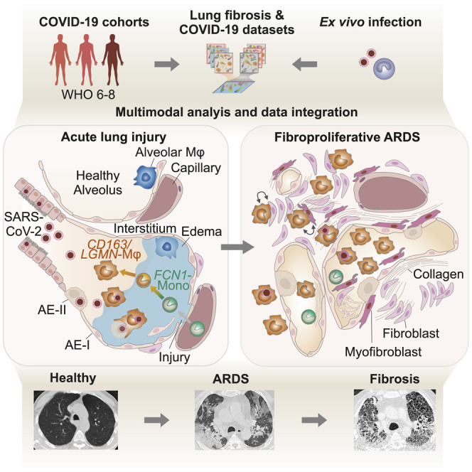 Keywords: ARDS; COVID-19; IPF; SARS-CoV-2; fibrosis; lung; macrophages; monocytes; proteomics; pulmonary fibrosis; single-cell transcriptomics.