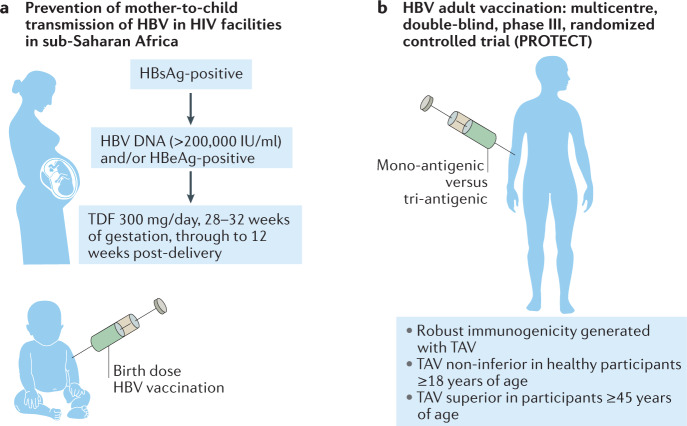 Vaccination is a key intervention for the elimination of hepatitis B virus (HBV) and hepatitis C virus (HCV) infections to fulfil the WHO’s 2030 global elimination goal. Innovations in 2021 promise to curb HBV transmission by reducing mother-to-child transmission and enhancing vaccine immunogenicity in at-risk adult groups. Additionally, an HCV vaccination trial was conducted, and there were also advances in our understanding of the immunology underpinning the lack of protection against HCV reinfection.