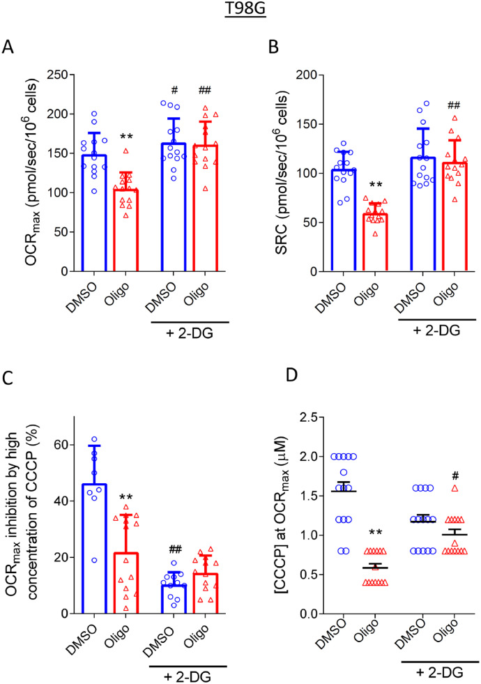 A dataset describing glycolytic inhibitors overcoming the underestimation of maximal mitochondrial oxygen consumption rate in oligomycin-treated cells