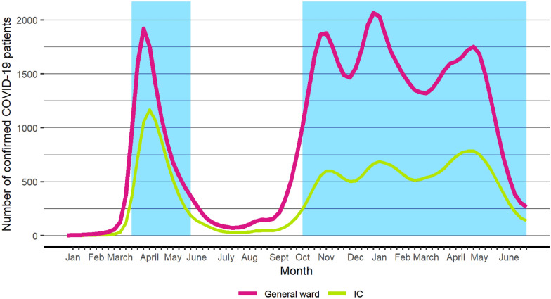 - Richards-Belle A, Orzechowska I, Gould DW, Thomas K, Doidge JC, Mouncey PR, Christian MD, Shankar-Hari M, Harrison DA, Rowan KM, ICNARC COVID-19 Team COVID-19 in critical care: epidemiology of the first pandemic wave across England, Wales and Northern Ireland. Intensive Care Med. 2020;46(11):2035–2047. doi: 10.1007/s00134-020-06267-0. - DOI - PMC - PubMed