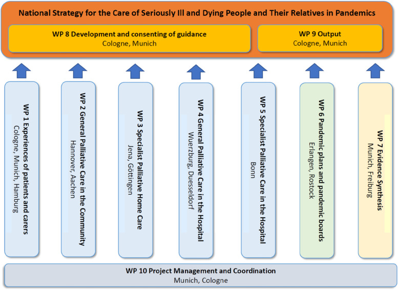 Methods: Mixed-methods project including ten work packages conducting (online) surveys and qualitative interviews to explore and describe i) experiences and burden of patients (with/without SARS-CoV-2 infection) and their relatives, ii) experiences, challenges and potential solutions of health care professionals, stakeholders and decision makers during the SARS-CoV-2 pandemic. The work package results inform the development of a consensus-based guidance. In addition, best practice examples and relevant literature will be collected and variables for data collection identified.