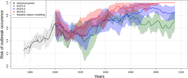 Conclusion: We identified locally relevant climatic factor driving dengue outbreaks in New Caledonia and assessed the inter-annual and seasonal risk of dengue outbreak under different climate change scenarios up to the year 2100. We introduced a new modeling approach to estimate the risk of dengue outbreak depending on climate conditions. This approach is easily reproducible in other countries provided that reliable epidemiological and climate data are available.