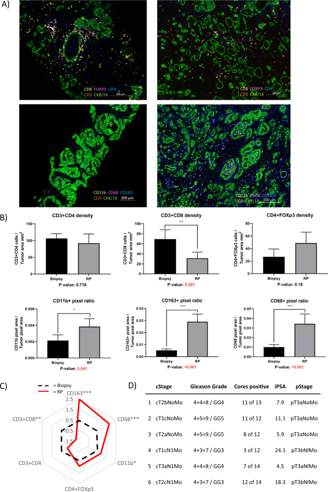 Significant changes in macrophage and CD8 T cell densities in primary prostate tumors 2 weeks after SBRT