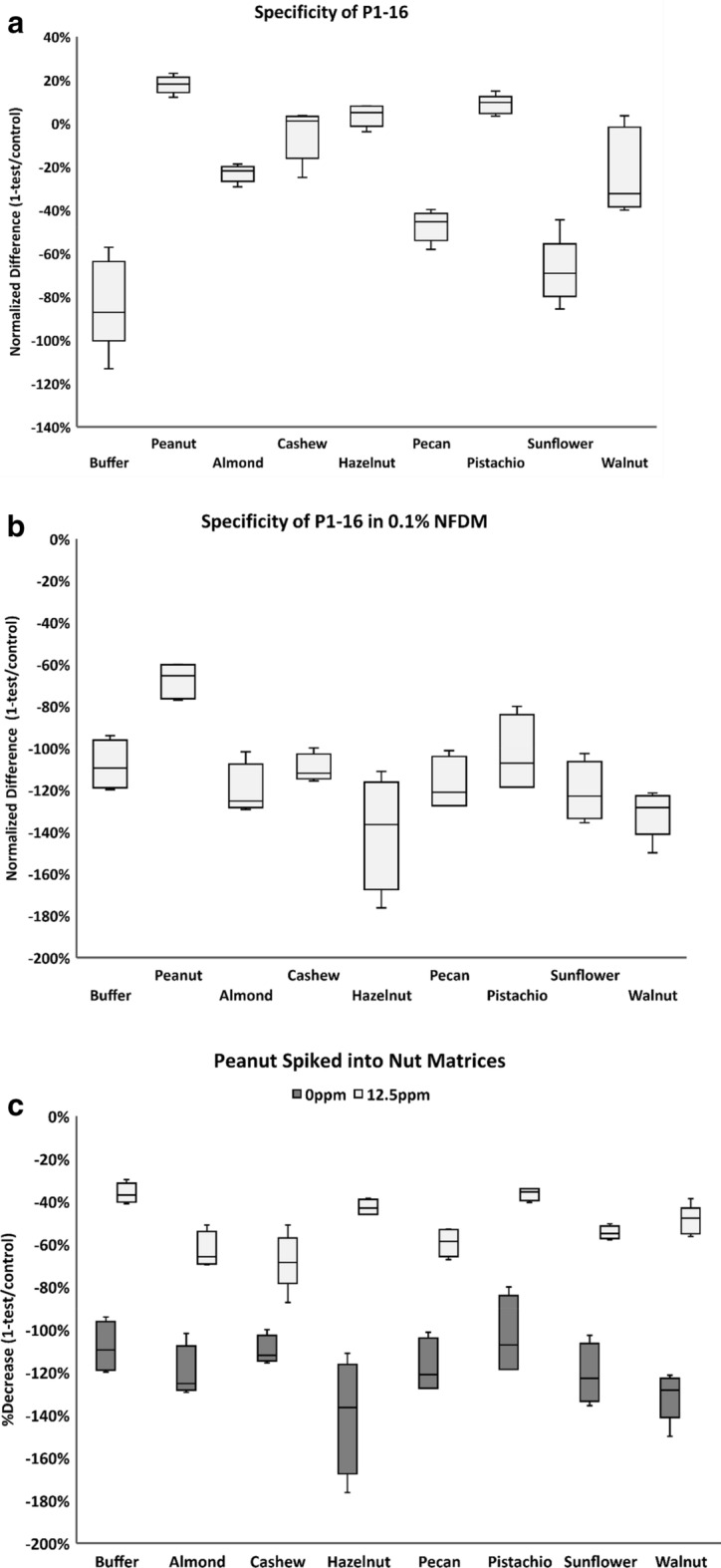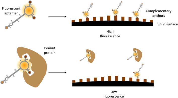 Aptamers, due to their small size, strong target affinity, and ease of chemical modification, are ideally suited for molecular detection technologies. Here, we describe successful use of aptamer technology in a consumer device for the detection of peanut antigen in food. The novel aptamer-based protein detection method is robust across a wide variety of food matrices and sensitive to peanut protein at concentrations as low as 12.5 ppm (37.5 µg peanut protein in the sample). Integration of the assay into a sensitive, stable, and consumer friendly portable device will empower users to easily and quickly assess the presence of peanut allergens in foods before eating. With many food reactions occurring outside the home, the type of technology described here has significant potential to improve lives for children and families.