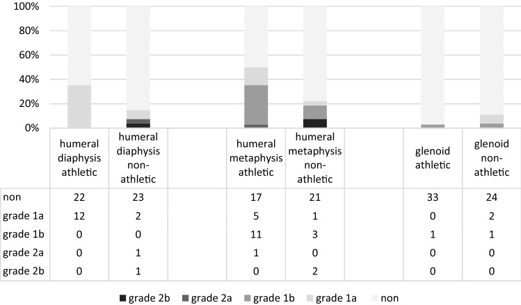 Material and methods: In this retrospective cohort study, patients who underwent RTSA between 06/2013 and 04/2018 at a single institution were included. Minimum follow-up was 2 years. A standardized questionnaire was utilized for assessment of patients' pre- and postoperative physical fitness and sportive activity. Patients who resumed at least one sport were assigned to the athletic group, while patients who ceased participating in sports were assigned to the non-athletic group. Postoperative clinical outcome measures included the Constant score (CS), American Shoulder and Elbow Surgeons (ASES) score, Simple Shoulder Test (SST), and visual analog scale (VAS) for pain. Active shoulder range of motion (ROM) and abduction strength were assessed. Radiographic evaluation was based on a standardized core set of parameters for radiographic monitoring of patients following shoulder arthroplasty.