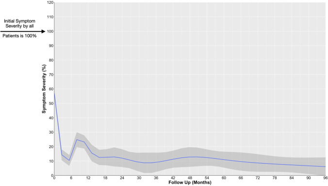Results: A total of 323 (92.6%) patients had > 90% symptom improvement, and 269 (77.1%) patients had complete resolution at the last follow-up. The overall trend of recovery showed steep remission within the first 6 months, followed by relapse peaking around 8 months with a second remission ~ 16 months. Five main recovery patterns were identified. Pattern analysis showed that evident proximal indentation of the facial nerve at root exit zone (REZ), males and facial palsy are associated with earlier recovery at multivariable and univariable levels. anterior inferior cerebellar artery (AICA), AICA/vertebral artery compressions and shorter disease durations are related to immediate resolution of the symptoms only on the univariable level. Time analysis showed that proximal indentation (vs. distal indentation), males and facial palsy witnessed significantly earlier recoveries.