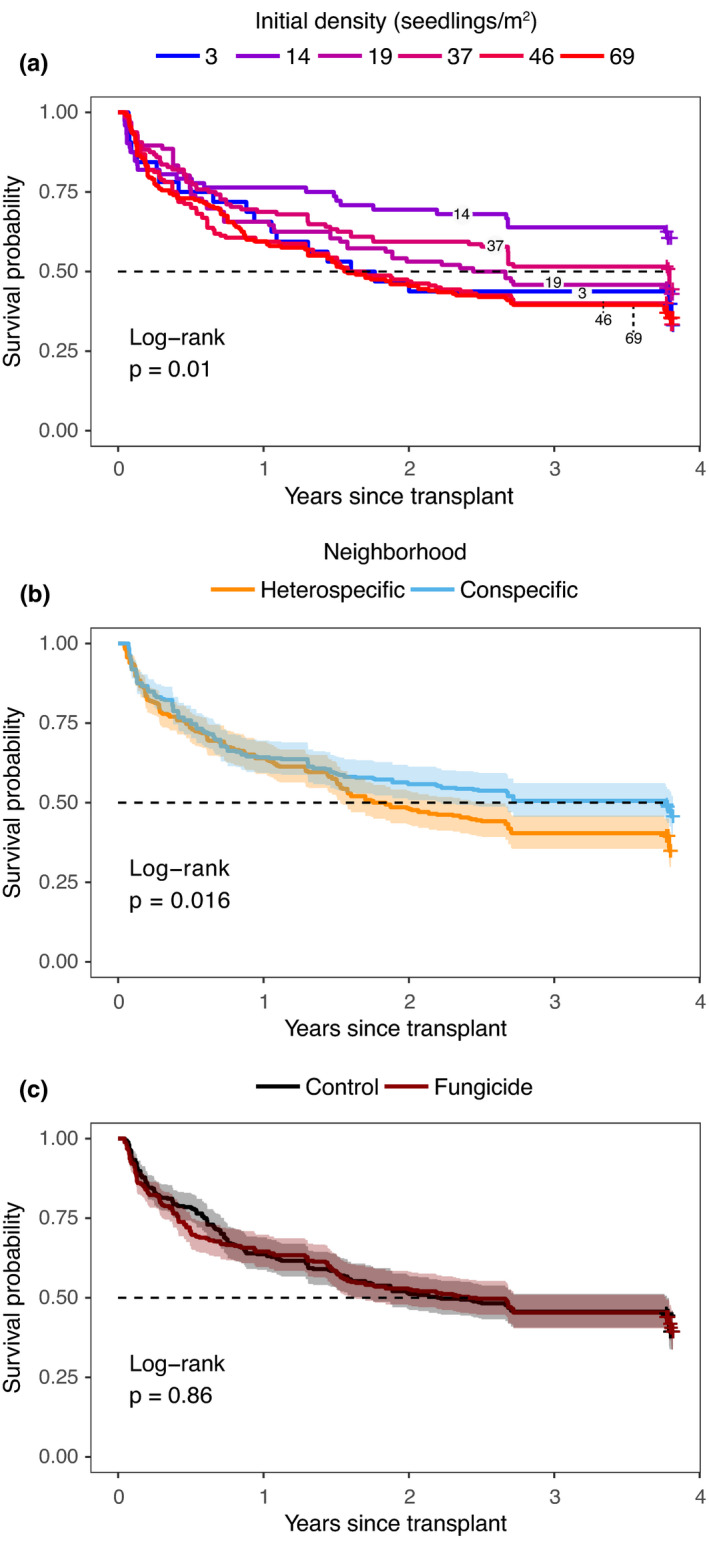 - Augspurger, C. K. (1984). Seedling survival of tropical tree species ‐ Interactions of dispersal distance, light‐gaps, and pathogens. Ecology, 65, 1705–1712. 10.2307/1937766 - DOI