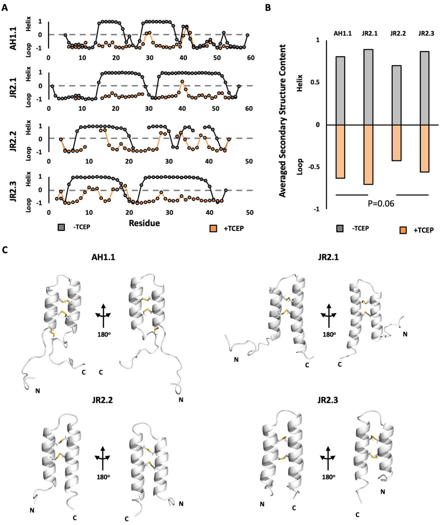 Vicilin-buried peptides (VBPs) from edible plants are derived from the N-terminal leader sequences (LSs) of seed storage proteins. VBPs are defined by a common α-hairpin fold mediated by conserved CxxxCx(10-14)CxxxC motifs. Here, peanut and walnut VBPs were characterized as potential mediators of both peanut/walnut allergenicity and cross-reactivity despite their low (∼17%) sequence identity. The structures of one peanut (AH1.1) and 3 walnut (JR2.1, JR2.2, JR2.3) VBPs were solved using solution NMR, revealing similar α-hairpin structures stabilized by disulfide bonds with high levels of surface similarity. Peptide microarrays identified several peptide sequences primarily on AH1.1 and JR2.1, which were recognized by peanut-, walnut-, and dual-allergic patient IgE, establishing these peanut and walnut VBPs as potential mediators of allergenicity and cross-reactivity. JR2.2 and JR2.3 displayed extreme resilience against endosomal digestion, potentially hindering epitope generation and likely contributing to their reduced allergic potential.