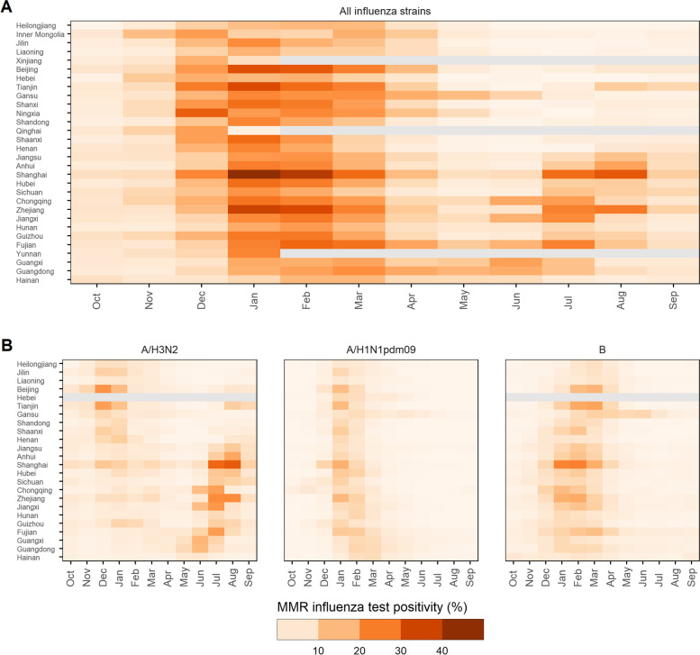 Conclusions: This is the first systematic review to simultaneously examine the seasonal variation of multiple influenza-related health outcomes at multiple spatial scales across mainland China. The seasonality information provided here has important implications for the planning and optimisation of immunisation programmes and healthcare provision, supporting the need for regional-based approaches to address variations in local epidemiology.