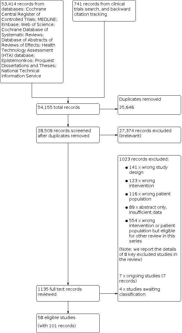 Search methods: We searched CENTRAL, MEDLINE, Embase, seven other databases and one trials register in July 2020.